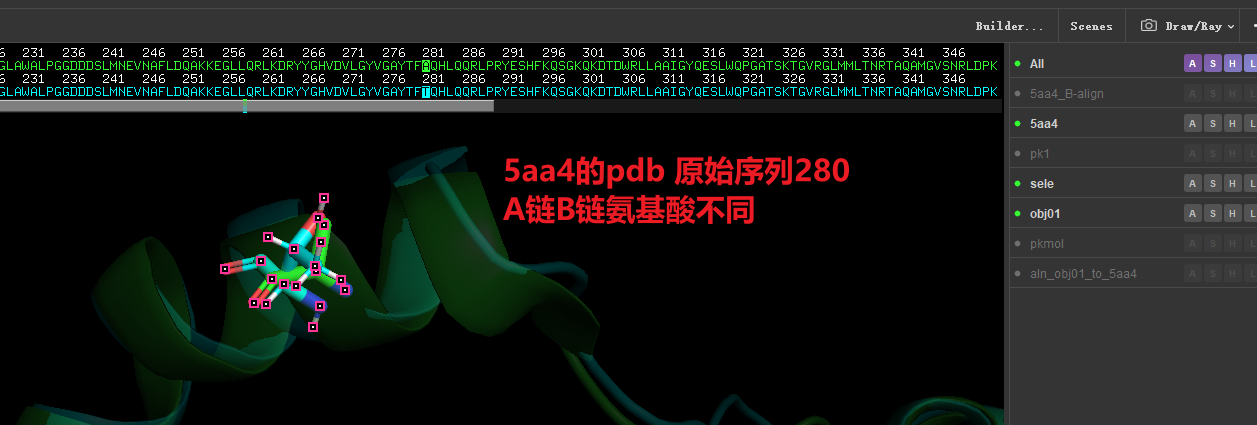 - # 计划删除B链 280位的氨基酸,手动写成ALA(与A链一致)用tleap补齐