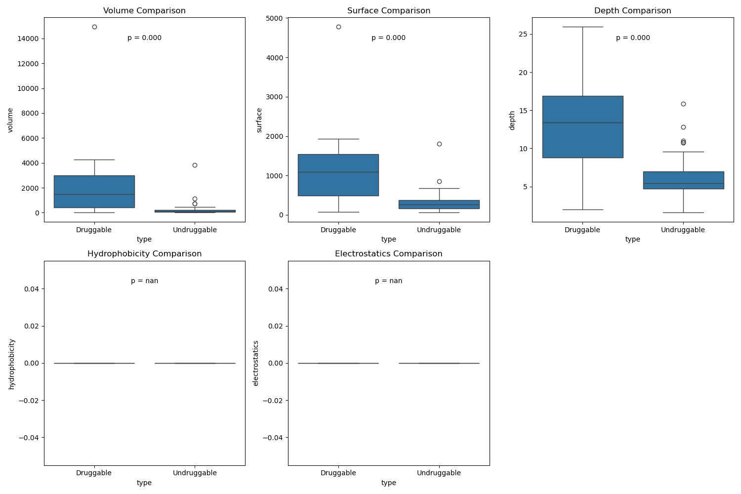 接下来是特征量的计算,还是:体积、表面积、深度、疏水性和静电势能
