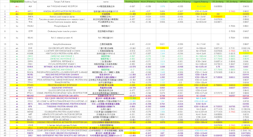 筛选人源+筛选docking score<=-9, 2D>=0.8,3D>=0.7+打table+整合