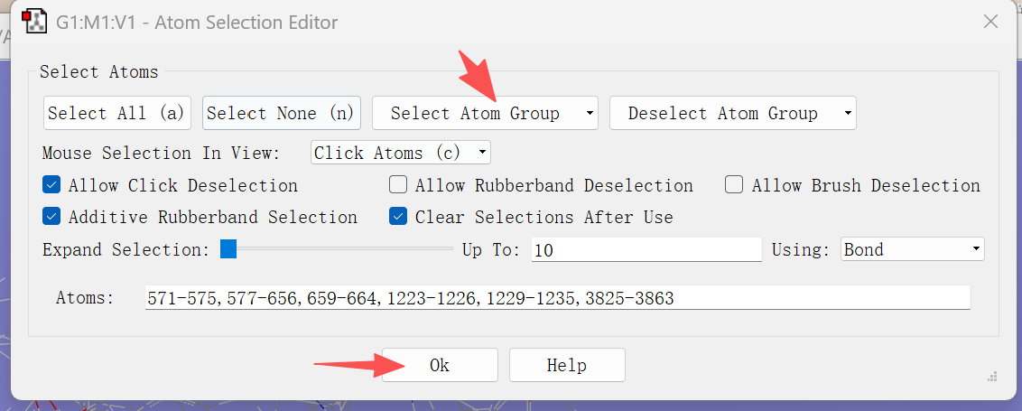 2.然后选中想要分析的残基与配体(其实就是之前选中的高层原子)’Tools----atom selection----‘