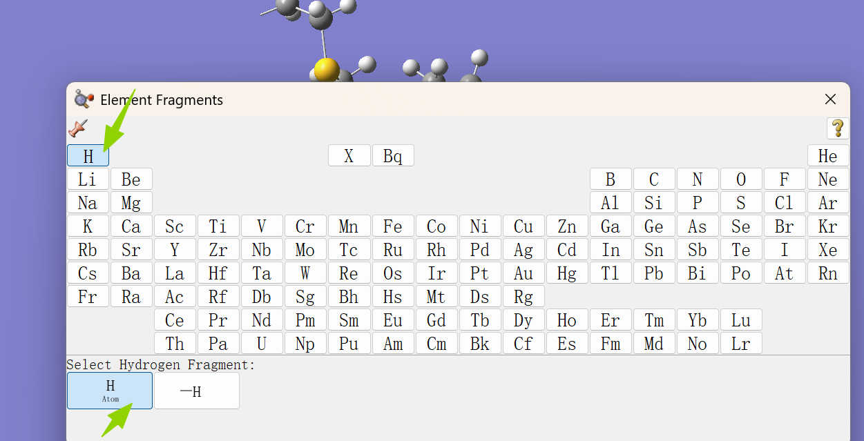4.补上绿色箭头上面那样断键的H。’右键----Builder----Element Fragments----H----点在刚才3中断键的地方‘